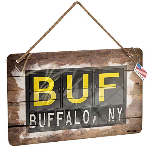 NEONBLOND Metal Sign BUF Airport Code for Buffalo, NY Christmas Wood Print