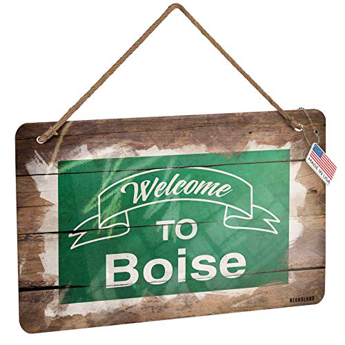 NEONBLOND Metal Sign Green Sign Welcome to Boise Christmas Wood Print