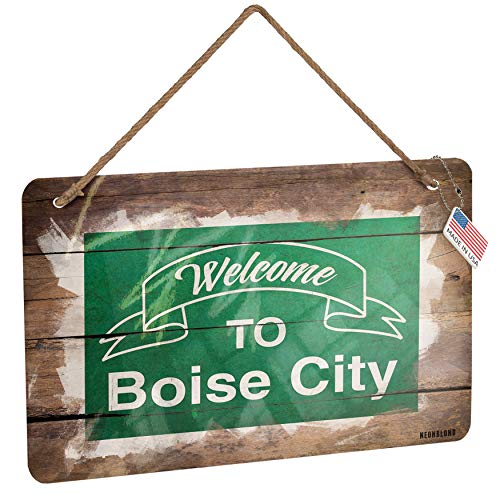 NEONBLOND Metal Sign Green Sign Welcome to Boise City Christmas Wood Print