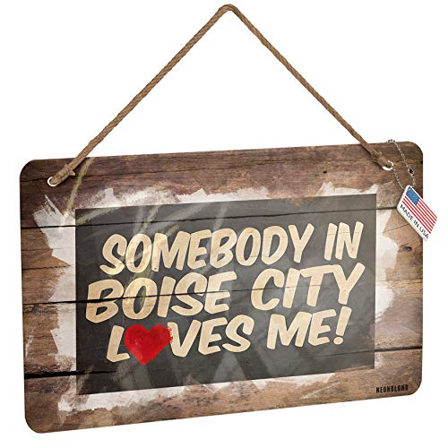NEONBLOND Metal Sign Somebody in Boise City Loves me, Oklahoma Christmas Wood Print