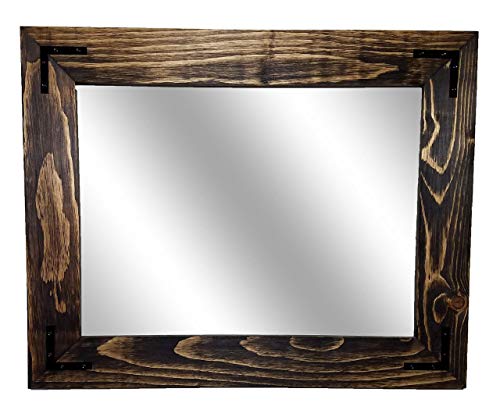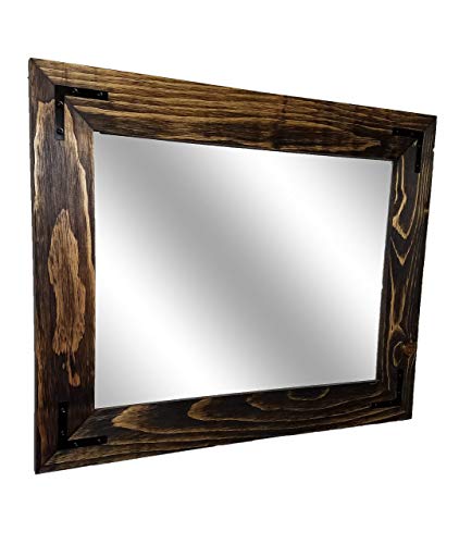 The Renewed Decor Shiplap Large Mirror is great addition to any bathroom, entryway, office, bedroom or living room or anywhere you can use some rustic style. Our frame is expertly hand build with unique character, we distress each and every board by hand to create that perfect rustic feel. To make sure our frame is durable for the long haul we use two pocket hole screws to secure each joint. We use high strength screwed on saw tooth hangers for easy fast hanging. We offer this mirror in three sizes with overall measurements of 42 Inches x 30 Inches, 36 Inches x 30 Inches or 24 Inches x 30 Inches, with your choice of vertical or horizontal mounting. Customize with your Mirror with your choice of 20 colors (lead image shown in Dark Walnut). We also offer our mirrors with or without decorative corner bracket in black or silver **Each frame will look slightly different in color and character, as each piece of wood is unique. Not sure about color we do samples https://www.amazon.com/dp/B07B8Y1CVB