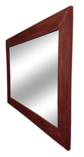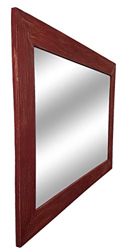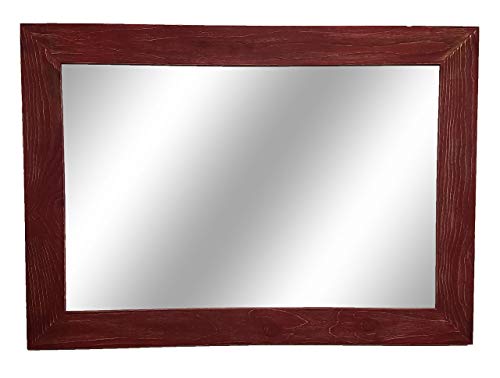 The Renewed Decor Shiplap Large Mirror is great addition to any bathroom, entryway, office, bedroom or living room or anywhere you can use some rustic style. Our frame is expertly hand build with unique character, we distress each and every board by hand to create that perfect rustic feel. To make sure our frame is durable for the long haul we use two pocket hole screws to secure each joint. We use high strength screwed on saw tooth hangers for easy fast hanging. We offer this mirror in three sizes with overall measurements of 42 Inches x 30 Inches, 36 Inches x 30 Inches or 24 Inches x 30 Inches, with your choice of vertical or horizontal mounting. Customize with your Mirror with your choice of 20 colors (lead image shown in Sundried Tomato Red). **Each frame will look slightly different in color and character, as each piece of wood is unique. Not sure about color we do samples https://www.amazon.com/dp/B07B8Y1CVB