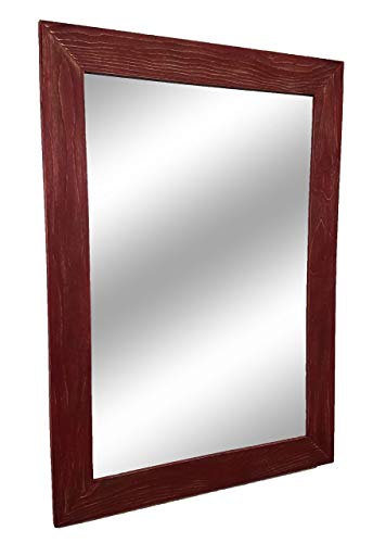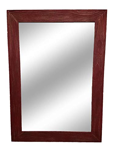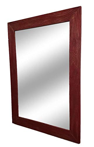 The Renewed Decor Shiplap Large Mirror is great addition to any bathroom, entryway, office, bedroom or living room or anywhere you can use some rustic style. Our frame is expertly hand build with unique character, we distress each and every board by hand to create that perfect rustic feel. To make sure our frame is durable for the long haul we use two pocket hole screws to secure each joint. We use high strength screwed on saw tooth hangers for easy fast hanging. We offer this mirror in three sizes with overall measurements of 42 Inches x 30 Inches, 36 Inches x 30 Inches or 24 Inches x 30 Inches, with your choice of vertical or horizontal mounting. Customize with your Mirror with your choice of 20 colors (lead image shown in Sundried Tomato Red). **Each frame will look slightly different in color and character, as each piece of wood is unique. Not sure about color we do samples https://www.amazon.com/dp/B073ZZG1DX