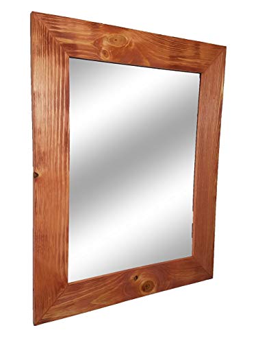 The Renewed Decor Shiplap Large Mirror is great addition to any bathroom, entryway, office, bedroom or living room or anywhere you can use some rustic style. Our frame is expertly hand build with unique character, we distress each and every board by hand to create that perfect rustic feel. To make sure our frame is durable for the long haul we use two pocket hole screws to secure each joint. We use high strength screwed on saw tooth hangers for easy fast hanging. We offer this mirror in three sizes with overall measurements of 42 Inches x 30 Inches, 36 Inches x 30 Inches or 24 Inches x 30 Inches, with your choice of vertical or horizontal mounting. Customize with your Mirror with your choice of 20 colors (lead image shown in Colonial Maple). **Each frame will look slightly different in color and character, as each piece of wood is unique. Not sure about color we do samples https://www.amazon.com/dp/B07B8Y1CVB