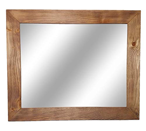 The Renewed Decor Shiplap Large Mirror is great addition to any bathroom, entryway, office, bedroom or living room or anywhere you can use some rustic style. Our frame is expertly hand build with unique character, we distress each and every board by hand to create that perfect rustic feel. To make sure our frame is durable for the long haul we use two pocket hole screws to secure each joint. We use high strength screwed on saw tooth hangers for easy fast hanging. We offer this mirror in three sizes with overall measurements of 42 Inches x 30 Inches, 36 Inches x 30 Inches or 24 Inches x 30 Inches, with your choice of vertical or horizontal mounting. Customize with your Mirror with your choice of 20 colors (lead image shown in Cherry Stain). **Each frame will look slightly different in color and character, as each piece of wood is unique. Not sure about color we do samples https://www.amazon.com/dp/B07B8Y1CVB