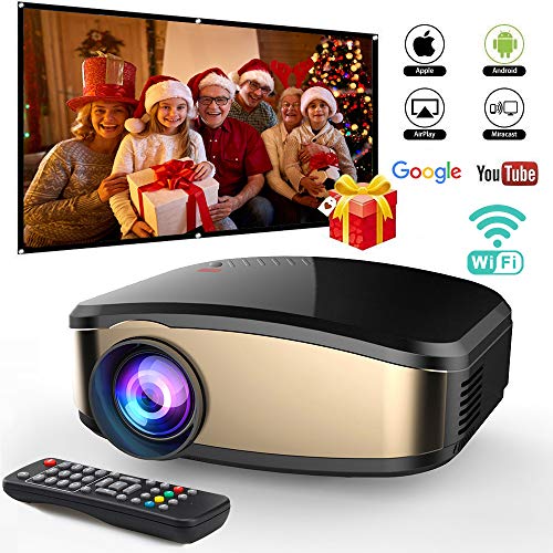 Wireless WiFi Video Projector DIWUER Projector +50% Brighter Full HD 1080P Portable Mini Projectors Support Airplay Mira-cast for Home Theater Game Movie