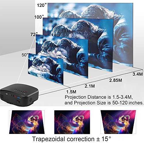 BIG SCREEN EXPERIENCE: Our portable mini projector adopts contrast ratio of 1200:1 and support 40~130 inches. Easy to focus the image by adjusting the lens. Projection size with 2.0~4.0 meters projection distance, enables you enjoy family movie nights with bigger screen happily