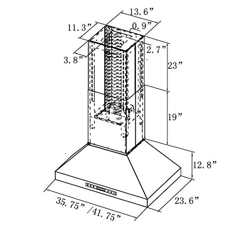 XtremeAir PX07-I42 900 CFM Easy Clean swing-able baffle Filters, Stainless Steel, Island Mount Range Hood, 42"
