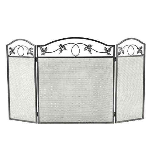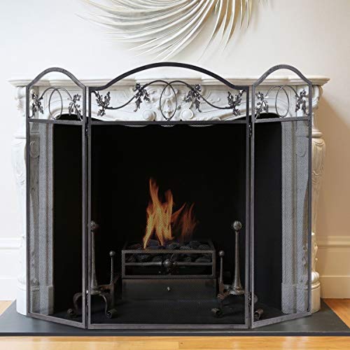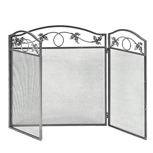 - This 3 panel folding steel fireplace is made of solid steel, which will be durable and sturdy. This elegant fireplace screen is giving a feeling of welcoming home. It will provide a very safe environment for your child, dog and cat. It will prevent them into places they aren't allowed like a fireplace or any other non kids friendly area. It offers great protection against the sparks from the fire, keeping them inside the fireplace and protecting your home safe from fire and spark flying damages. Besides, the sliver flower design is also a great decoration to home. Do not hesitate to buy one!