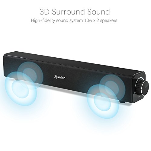 Sound Bar, 20W Soundbar Wired and Wireless Bluetooth Audio Stereo, Bluetooth Home Theater TV Speaker, AwesomeWare Surround Sound Bar for TV, PC, Cellphone, Tablets Projector and Wireless Devices