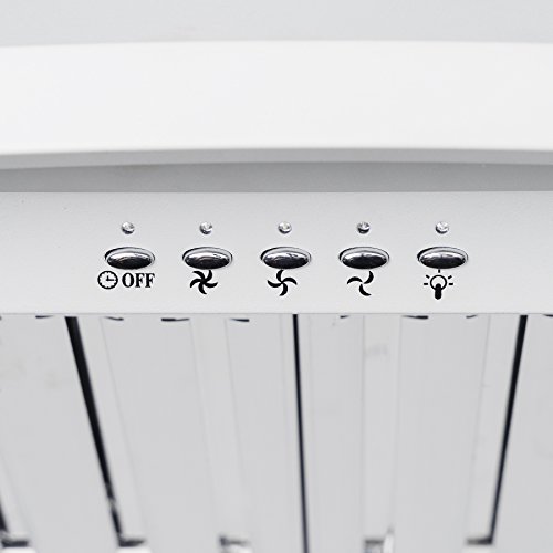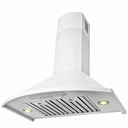 Futuristic, modern, and a beautiful solid white color. This Golden Vantage 30" wall mount range hood brings a unique style that gives a contemporary feel to your kitchen. The control panel on the front brings a 3-speed, 400 CFM with a noise reduction of