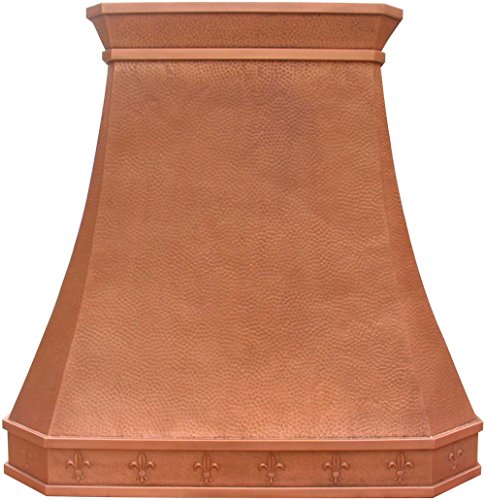 Stunning copper range hood cover is handcrafted from 16 Gauge solid copper (99.9% pure virgin copper, not recycled copperr) by skilled copper artisan with elegant design, installs easily and free maintance, hand hammered or smooth copper surface texture, decorative crown and patterns with variance of patina gives unique and antique element to your kitchen