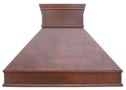 Stunning copper range hood cover is handcrafted from 16 Gauge solid copper (99.9% pure virgin copper, not recycled copperr) by skilled copper artisan with elegant design, installs easily and free maintance, hand hammered or smooth copper surface texture, decorative crown and patterns with variance of patina gives unique and antique element to your kitchen
