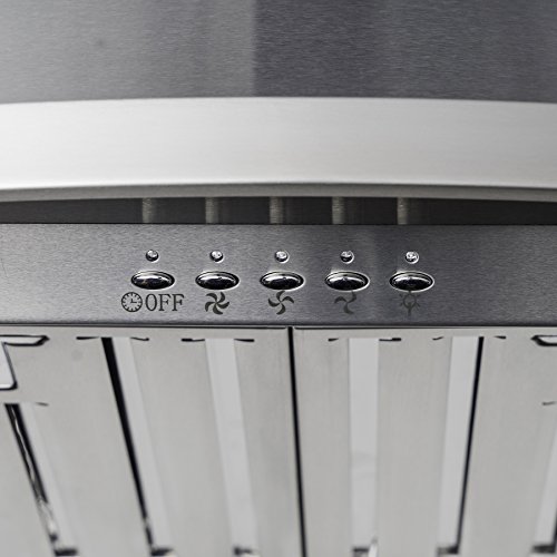 Futuristic, modern, and beautiful brushed stainless steel. This AKDY 30" wall mount range hood brings a unique style that gives a contemporary feel to your kitchen. The control panel on the front brings a 3-speed, 400 CFM with a noise reduction of