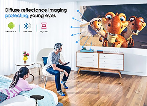 【WiFi, Bluetooth, Android 4.4.2】In addition to traditional video projection capabilities, the TOUYING D2 also have built-in Android 4.4.2 system, it is also one of the few video projectors that can reach out to the internet and stream content from services such as Netflix, YouTube, and others. There is access to abundant TV, movie, music, game, and information choices.